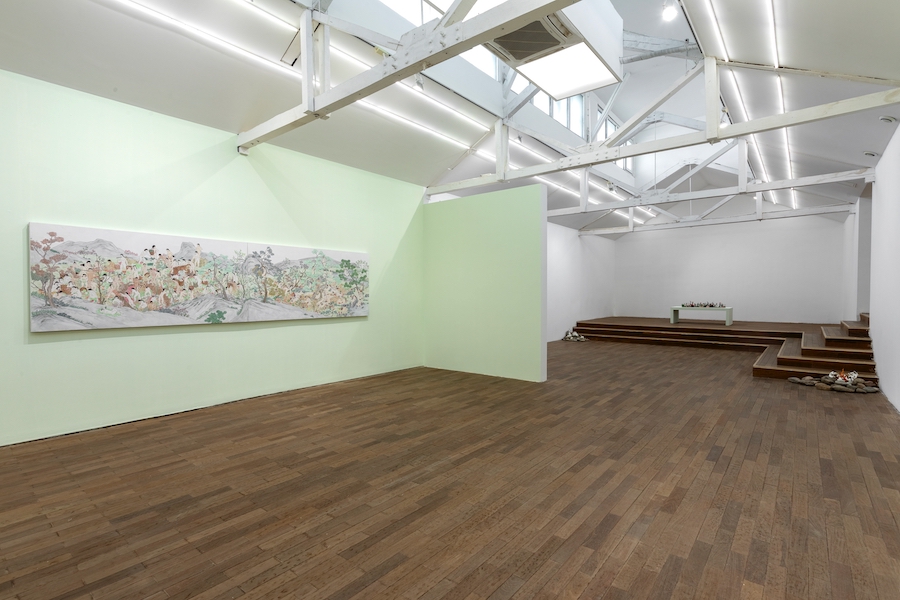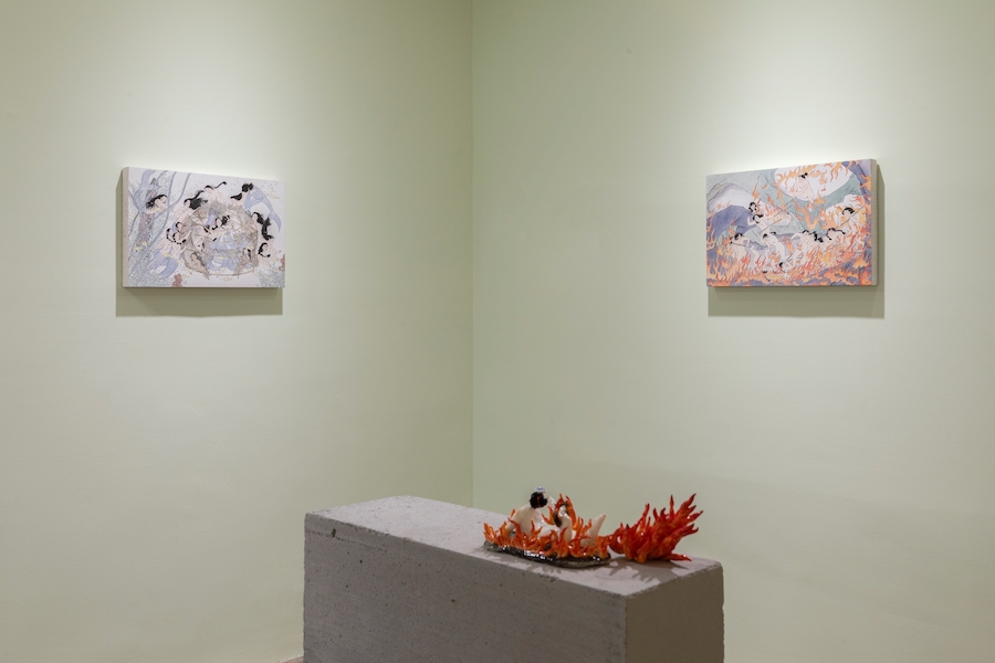 对女性身体的塑造时常会陷入各种困境中:或是通过展示创伤来控诉,或是通过解构身体来反叛。李萧禾的创作提供了一条独特的路径。她并非无视女性身份的焦虑,而是选择以“重建”来回应“解构”,以“完整”来疗愈“割裂”。在这里,她的“桃源”——自然与人之间不存在危险与征服的关系,而是和谐共生,画中人物所流露的雀跃与安宁,是源于一种深刻的安全感与对生命本身的信任。“现实中的她越不高兴,她便越希望画中人高兴起来。”这种创作动机,使她能够超越个人情感的宣泄,变为一种主动的生命赋形以及对理想社会关系的想象。