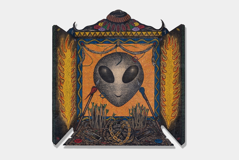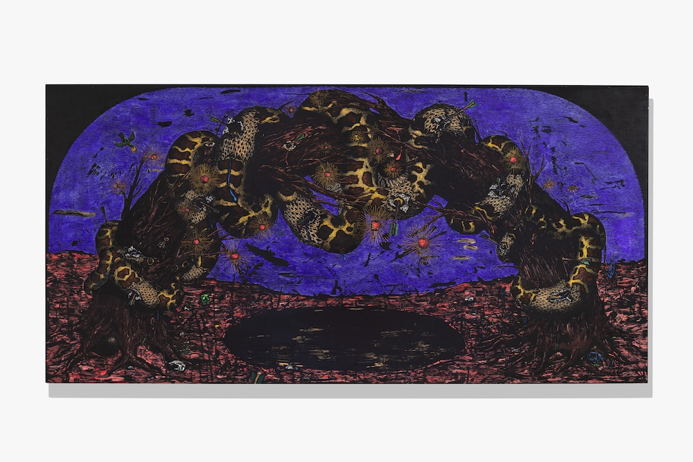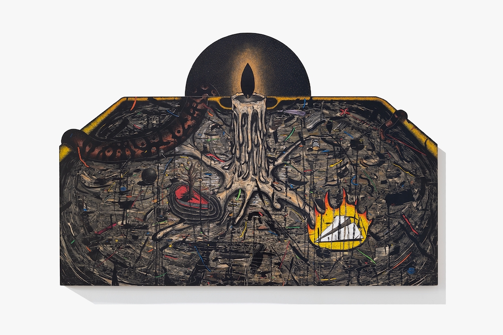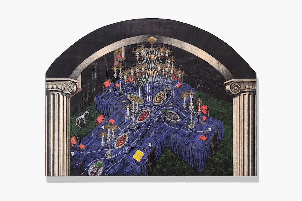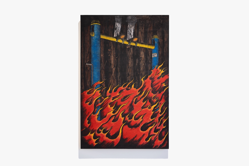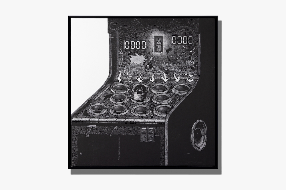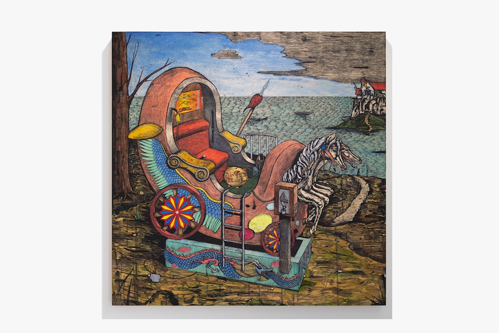 顾恩铮长于材料,专注于木刻,刻刀就如一种破坏,也是焦虑感的释放。在传统木刻版画的影响下,以刀代笔释放荷尔蒙式的冲动,木板语言是一种限制极强的语言,这一限制性语言可以瞬间性的发泄出焦虑、不安和躁动,然后将作品中的焦虑不安转变成一种荒诞的悲剧感,一座与外界沟通的桥梁就这样被诙谐的语言建立起来,等待救赎和蜕变。